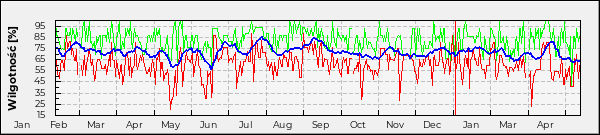 Obserwacja roczna wilgotności względnej powietrza
