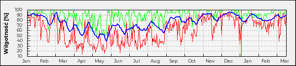 Obserwacja jednodniowa wilgotności względnej powietrza
