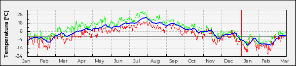 Obserwacja długoterminowa pogody dla Oslo (Gardermoen) [Oslo Airport, Gardermoen]; Norwegia