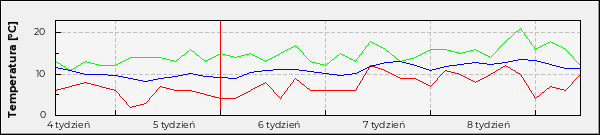 wartość maksymalna   wartość minimalna   średnia dziesięciodniowa