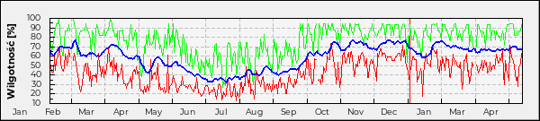 Obserwacja roczna wilgotności względnej powietrza