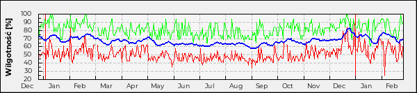 Obserwacja roczna wilgotności względnej powietrza